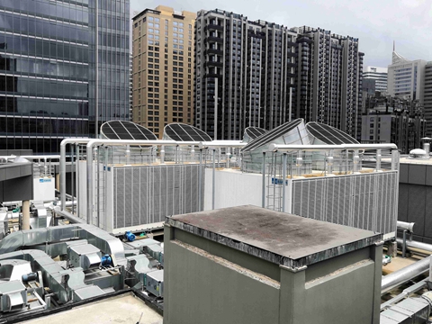 本工程位于上海市静安区裕通路89号静安国际中心裙房屋面,现因静安国际中心屋面3组750T和1组200T冷却水量的冷却塔运行产生噪声,影响周边居民生活环境,需要做降噪处理。