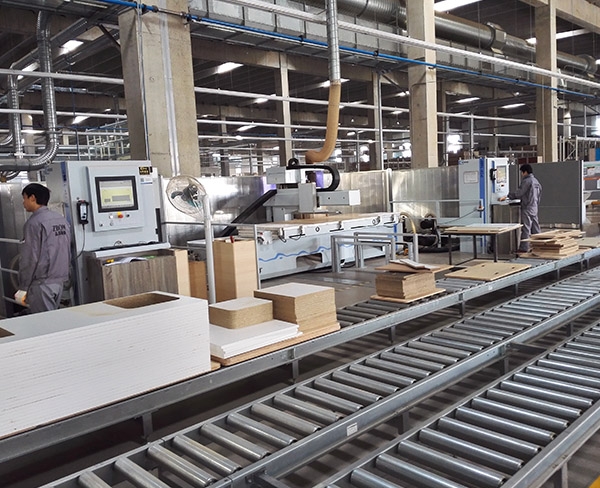志邦厨柜有限公司成立于1998年,作为中国橱柜行业的先驱,是国内的橱柜产品制造基地,集产品研发、生产、销售和多经营为一体的化橱柜企业。厂区内20台封边机(87dB(A))、8台裁板锯(81dB(A))、钻孔中心(92dB(A))、加工中心(88dB(A)),厂内综合噪声达85dB(A)。设备运行时产生的噪音较大,影响了厂区内部环境。为解决噪音对企业员工的影响。在不影响各工位正常操作,人员通行,货物搬运的实际情况制定了科学的治理方案。